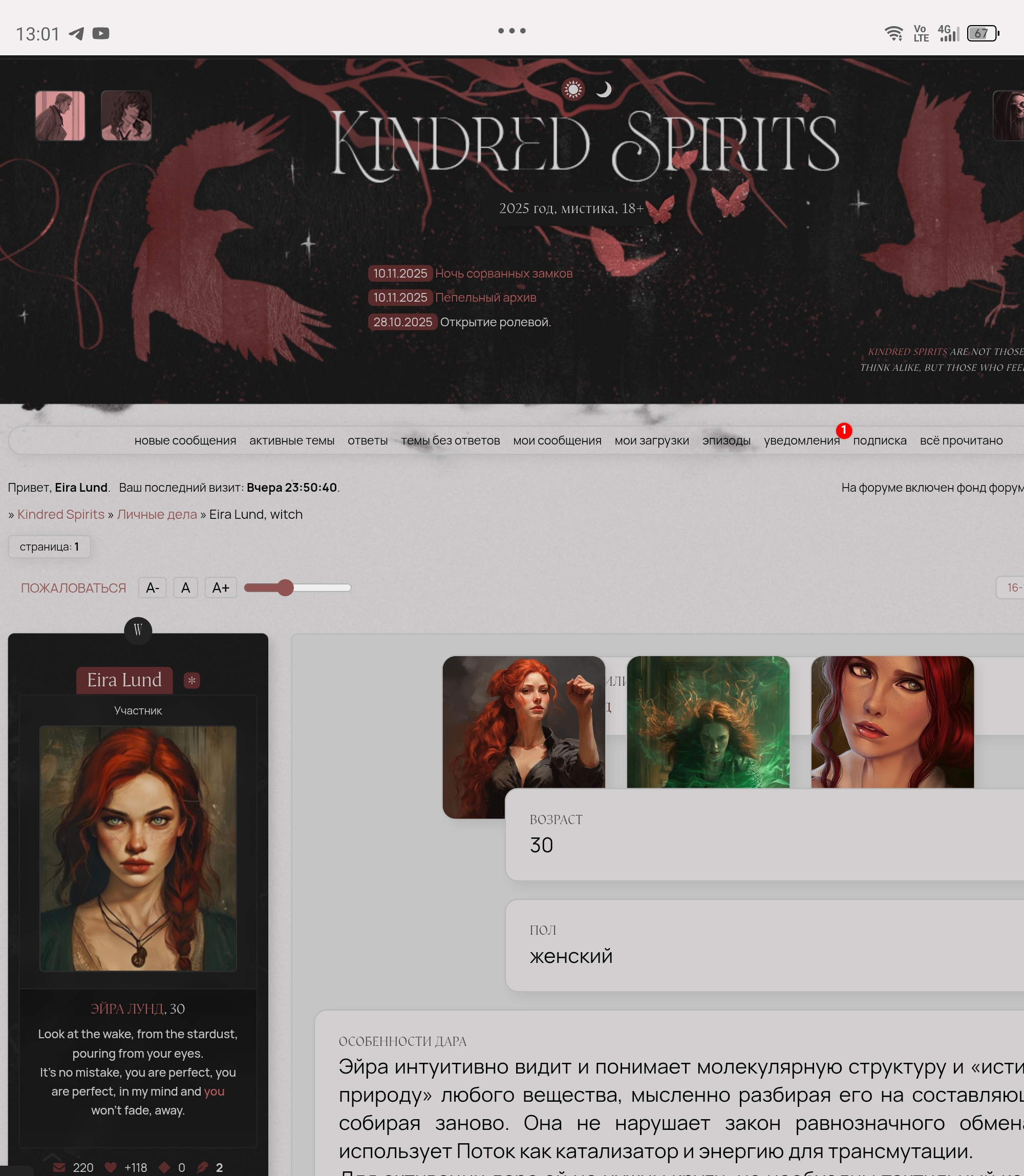 Поэтому я создам на днях ещё одну тему в информации о мире, где будет своеобразная база данных об известных ритуалах, артефактах, зельях, заклинаниях и т.д.